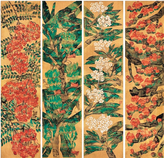 林蓝 岭南风情 300×75cm×4 纸本设色 2018年