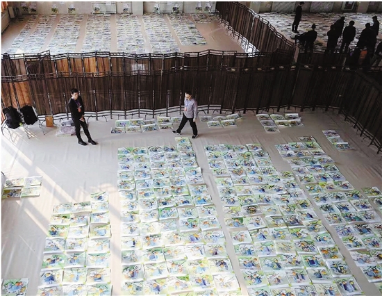 资料图片:某省美术联考阅卷现场