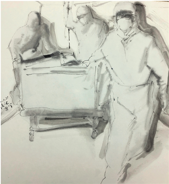 张望 《速写抗击疫情一线》组画之一——抗争 速写
