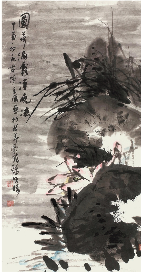 张立辰(北京) 圆荷滴露净晚凉 138×70cm