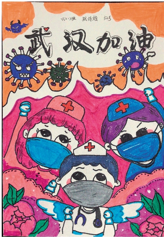 张诗焓(10岁,慈溪原色文化艺术中心) 与你同行武汉加油