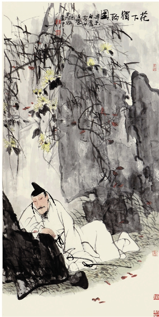 卢沉 花下独吟图 135.5×68.5cm 1991年