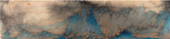 吴强 旭日出幽谷 20×88cm 绢本水墨设色 2015年