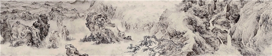 导师点评:李杨同学致力于中国传统山水画的古法研究与拓展,毕业创作《青城幽涧》以中国画特有的手卷形式加以表现,作品笔墨精微,气象宏阔,意境幽深。