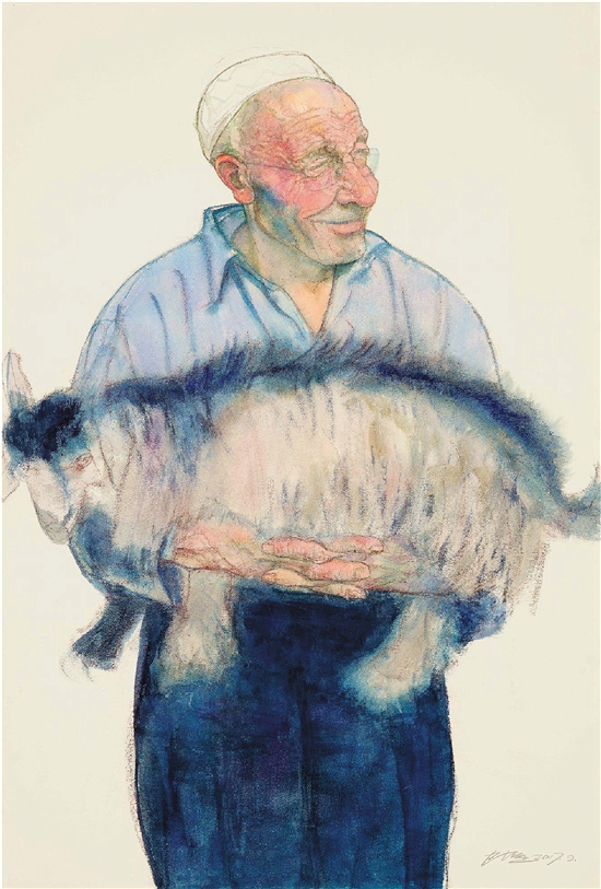 陈坚 老人和羊 纸本 152×102cm 2019年 浙江美术馆藏