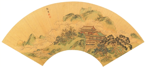 明 郑重 仙山楼阁图 金笺水墨 18×51cm (龙美术馆藏)