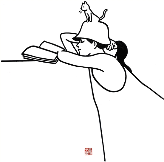 纵观金城新作,以黑白线条去刻画新生代东方女性的“美”,或活泼或恬静,但都透着东方韵味。同样粗细的线条处理,让画面的装饰味更浓,刻意强调的平面感,类似涂鸦勾线或是矢量勾线的技巧,极富设计感,而简约的线条成为画面构成的关键词。