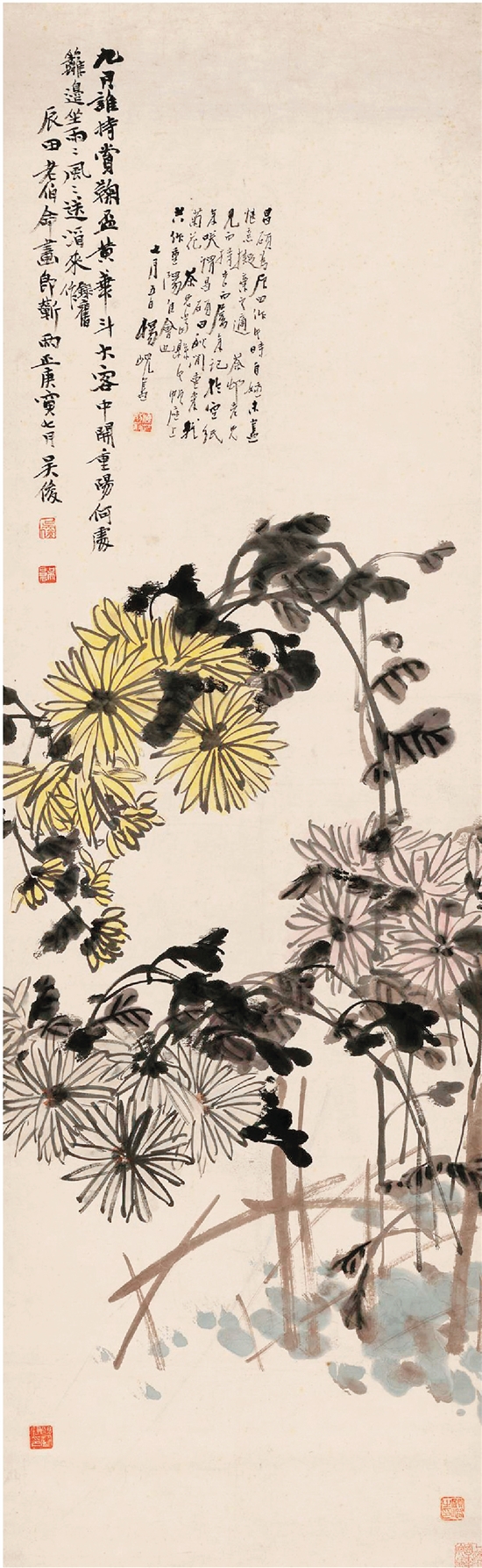 吴昌硕 重阳画菊 134×41.5cm 纸本设色 上海中国画院藏