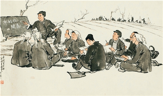 李斛 田间变课堂 28×47cm 中国画 1958年 中国美术馆藏(2019年李凡、李蓉、李芸捐赠)