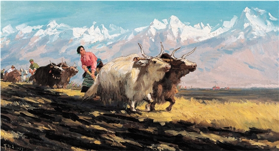 董希文 千年土地翻了身 77×143.5cm 油画 1963年 中国美术馆藏