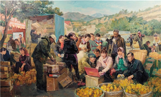 郭健濂、褚朱炯 互联网的春天——农村电商 264×424cm 油画 2019年 中国美术馆藏