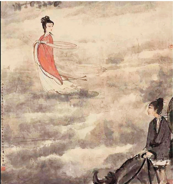 傅抱石 七夕 甲申(1944年)作 立轴 设色纸本