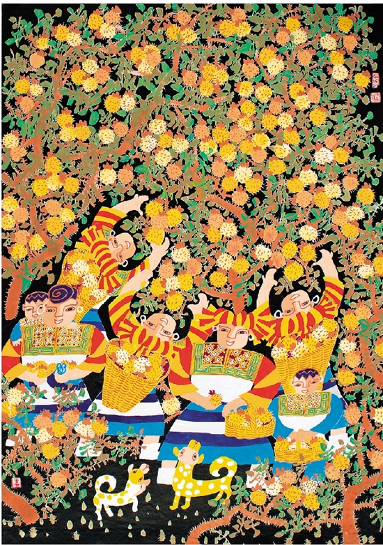 徐承贵(贵州) 刺梨花开刺梨香,脱贫全靠党中央 109.6×78.7cm