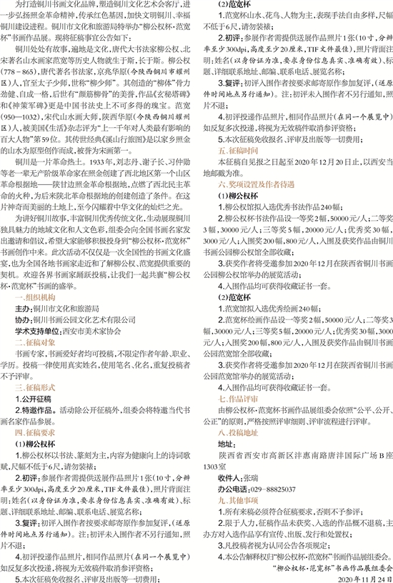 3.获奖作者将受邀参加2020年12月在陕西省铜川书画公园范宽馆举办的展览活动;