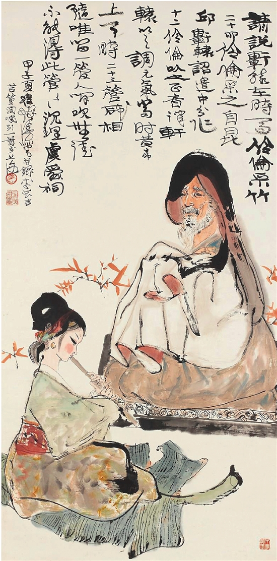 程十发 伶伦采竹 136×68cm 1984年