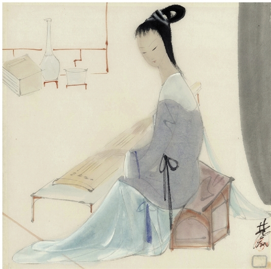 林风眠 弹琴仕女 34×34cm