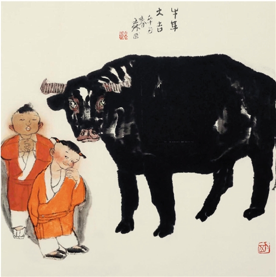 袁武 牛年大吉 34×34cm 2021年