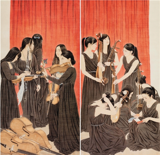 马楠 异彩和弦咏韶光 180×180cm 2014年 绢本设色
