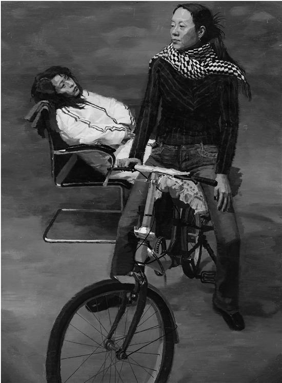 王旭 双人全身像 165×62cm 纸本丙烯 2005年 指导教师:余陈