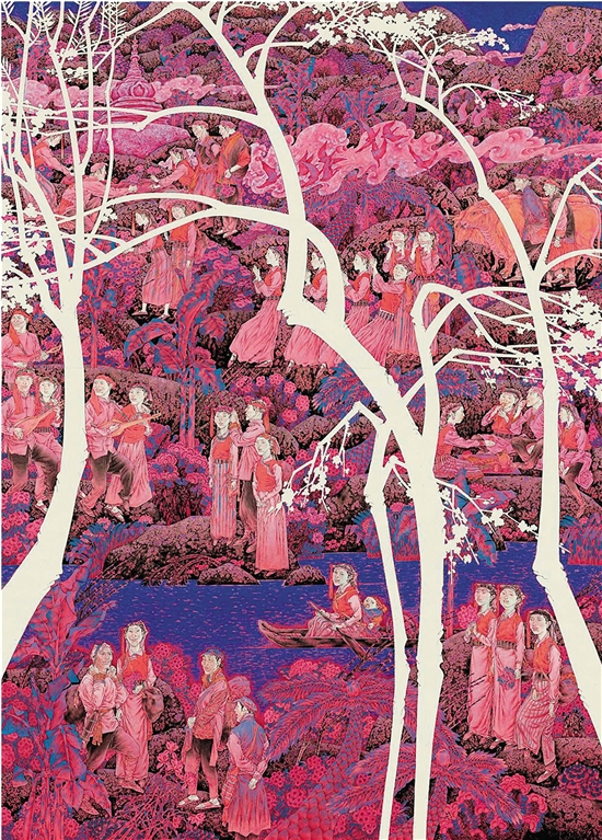 陈孟昕 怒族鲜花节·生活如歌 350×250cm 纸本设色