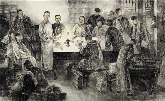 王磐德 周群 寒夜星火——1921·济南马克思学说研究会 220×360cm