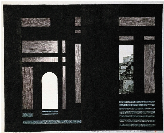 应天齐 徽洲之梦二 水印版画 2000年