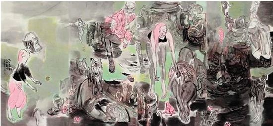 张江舟 只有你能在这里找到爱情 200×400cm 水墨设色 2021年