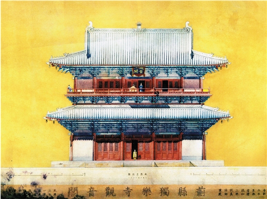 梁思成 蓟县独乐寺观音阁南立面水彩渲染图 1932年 中国文化遗产研究院藏