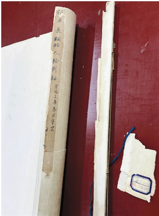 题签残缺、酥裂开,在题签落款处署名和印章一半断开不见。