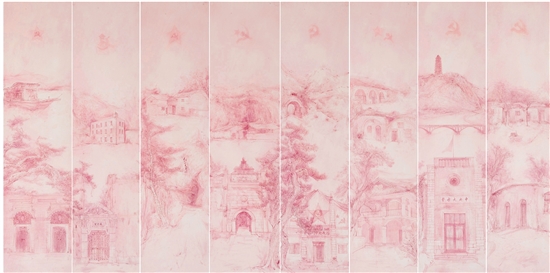 周京新 梁雨 百年史诗第一部分/起来,起来 210×50cm×8 中国画