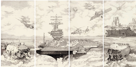 徐惠泉 谢士强 百年史诗第四部分/强起来 199×99cm×4 中国画