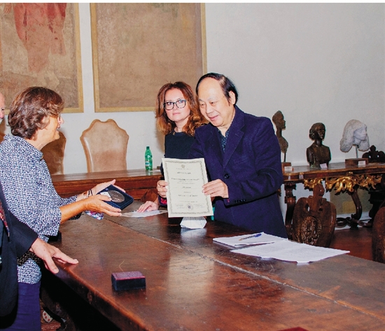 意大利艺术研究院主席为刘佑局授予名誉院士证书