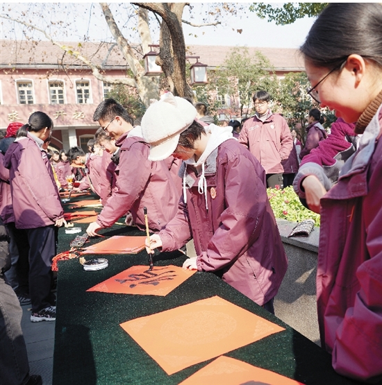 学生们“送福迎新”