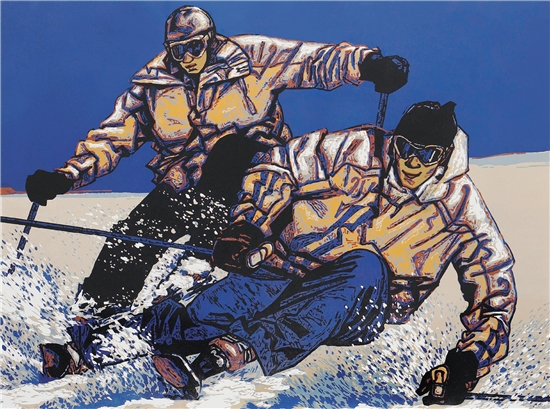 董鸣 再启新程 90×120cm 套色木刻(选自“迎冬奥·冰雪情——黑龙江省优秀美术书法作品邀请展”)