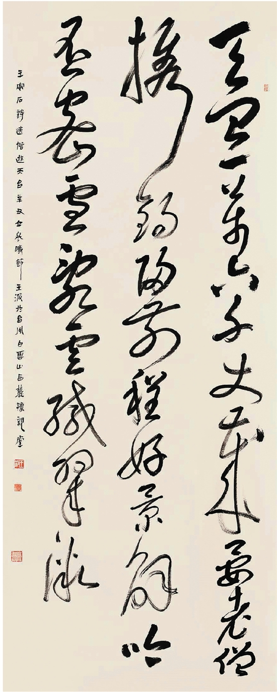 王波 录王安石诗《送僧游天台》 369×140cm 草书