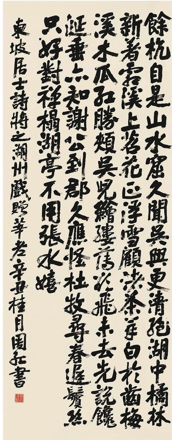 周红 录苏轼诗《将之湖州戏赠莘老》 369×140cm 行楷