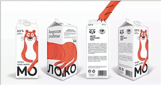 来自俄罗斯的设计工作室молока设计了这款别致的包装,将三盒牛奶放一起就可以拼成一只连续完整的老虎,仿佛乐高游戏一般。