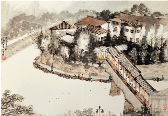 吴迈前 千岛湖下姜村 45×65cm 中国画
