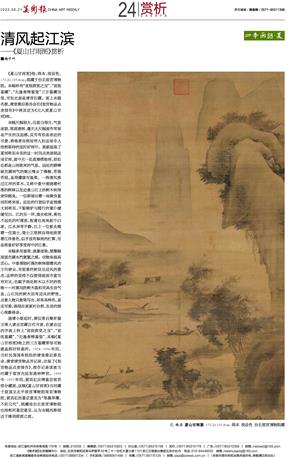 本幅尺幅较大,但留白得当,气息疏朗,笔调清润,毫无大尺幅画作常容易产生的压迫感,反而有些易亲近的可爱,将观者自然地带入到这场令人欣然期待的适时好雨中。画家选取了夏雨将至未至的这一时间点来表现这场甘雨,画中无一处直接描绘雨,却处处都是山雨欲来的气息。远处的群峰被充满雨气的烟云掩去了锋棱,若隐若现,显得朦胧而温柔。一阵清风拂过江岸的草木,又将中景中围绕着村落的树林以及近景山石上的树木吹得俯仰摇曳。一切都暗示着一场爽快夏雨即将来临。近处的行旅似乎是预感大雨将至,下船骑驴与随行的童仆缓缓而归。江的另一岸,渔夫收网,离他不远处的村落前,牧童也匆匆赶牛归家。江水异常平静,江上一位船夫载着一位隐士,隐士正悠然自得地欣赏着江岸景色,似乎没有躲雨的打算,而是准备好好享受雨中的江景。