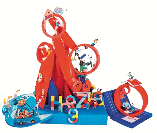 | ▼作品名称:迎亚运,与城市一起律动 学校:杭州市钱江外国语实验学校 作者:倪语萱、张语恬、陈怀萱、卢思翰、谢若昕 指导教师:宋澜、李群 作品说明:整件作品由泡沫切割而成,主色调是蓝色和红色,以彩色作为点缀。整体造型是一个飞速发展的城市形象,水清,山秀,路畅,城美,人靓!各行各业的人正坚守在自己的岗位上为杭州这座城市增添风貌。人们在杭州这座美丽的城市里运动、工作、学习、旅行,并以“HangZhou”字母凸显主题。 |