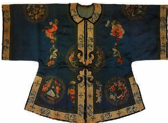 蓝地如意团花纹对襟上衣正反面