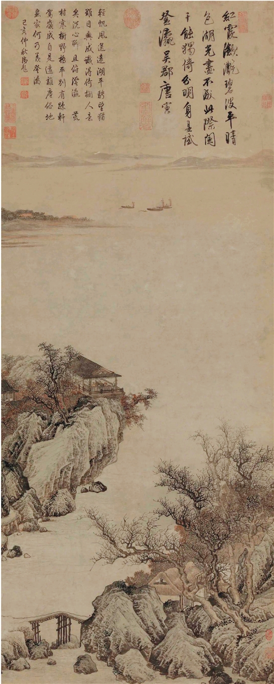 明 唐寅 湖山一览图 中国画 140×56.3cm 中国美术馆藏