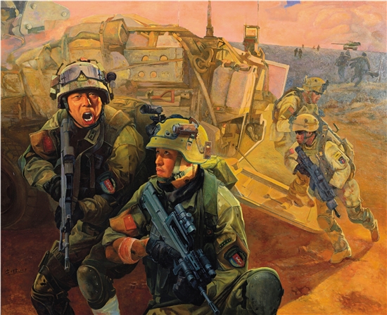 李广德 训练日 195.5×162.5cm 油画(图片选自“庆祝中国人民解放军建军95周年全国美术作品展览暨第15届全军美术作品展览”)