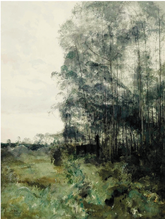 张冬峰 路边的小树林 水彩 75×55cm 2018年