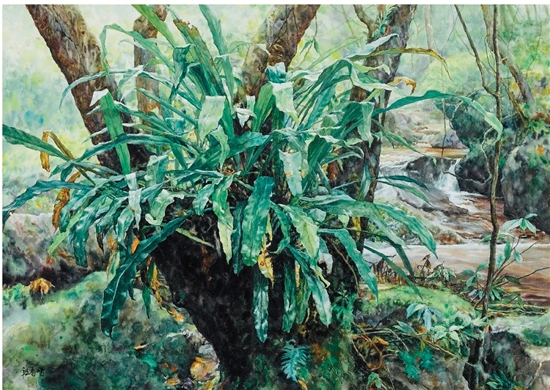 段春雷 亚热带·山林物语 水彩 79×110cm 2022年