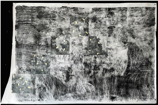 素描纸上油彩、油墨、蜡和油性彩色铅笔、拼贴 160.5×250.5cm 2022年