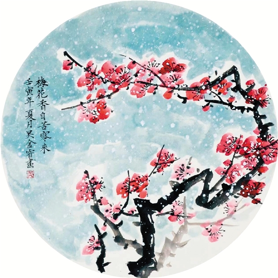 ◀吴金睿(东阳市外国语学校 指导老师:叶小强) 梅花香自苦寒来