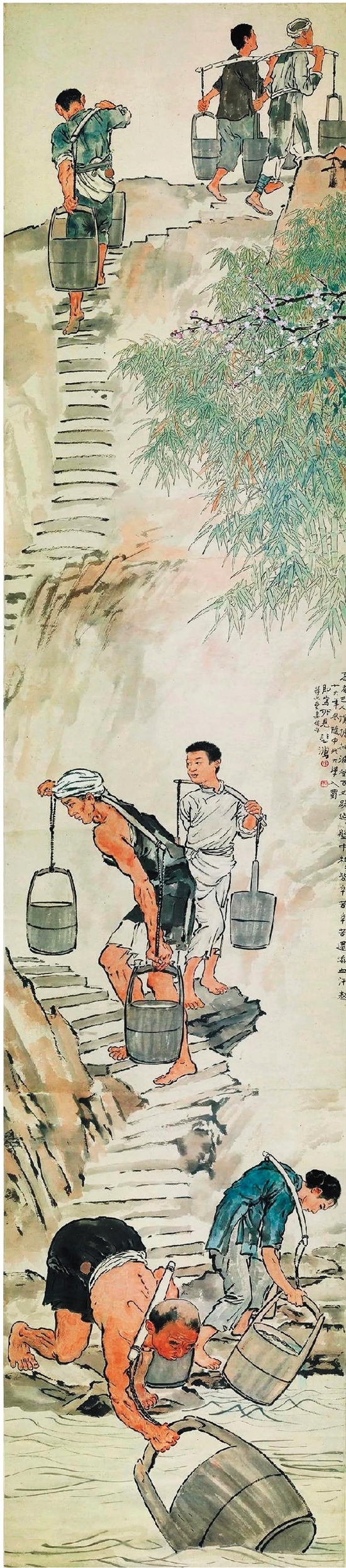 徐悲鸿 巴人汲水图 300×62cm 国画 1937年 北京徐悲鸿纪念馆藏