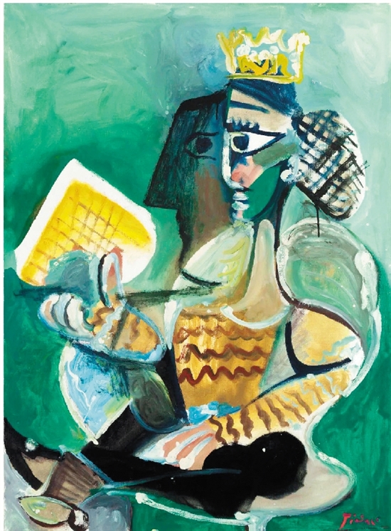 巴布罗·毕加索 冠冕女子与国王饼 油画画布 100×73cm 1965年