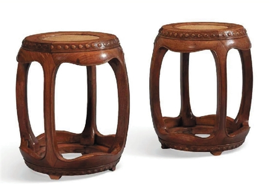 17世纪 黄花梨四开光坐墩一对